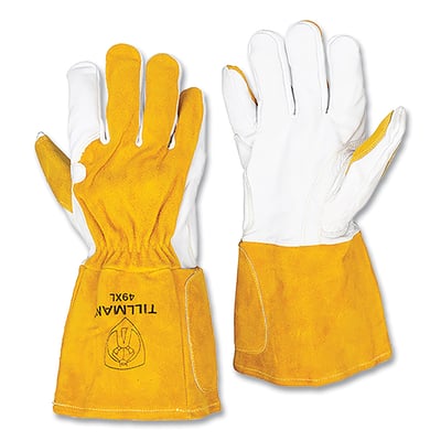 Loading product details...MIG Welding Gloves, 49, Top Gr Goatskin Palm/Split CH BOH/Cuff, XL, Bourbon Brn/Pearl, 5 in Shirred Cuff