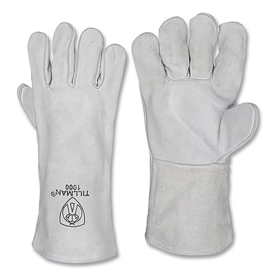 Loading product details...Stick Welding Gloves, 1000, Shoulder Split Cowhide Palm/BOH/Cuff, Lg, Pearl, 14 in L Cuff, Bulk