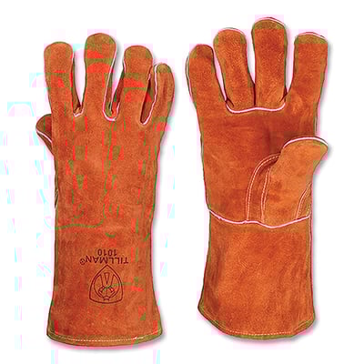 Loading product details...Stick Welding Gloves, 1010, Select Shoulder Split Cowhide Palm/BOH/Cuff, Lg, Russet, 14 in L Cuff