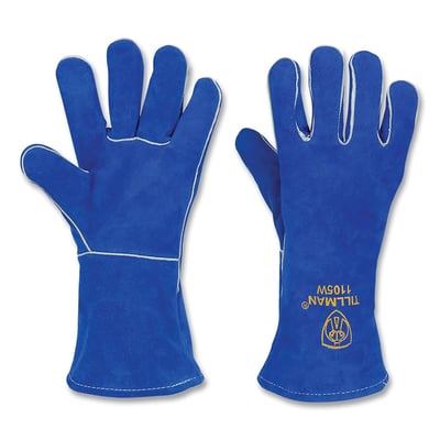 Loading product details...Stick Welding Gloves, 1105, Slightly Select Shoulder Split Cowhide, X-Sm, Cotton Foam Lining, Blue, Straight Cuff