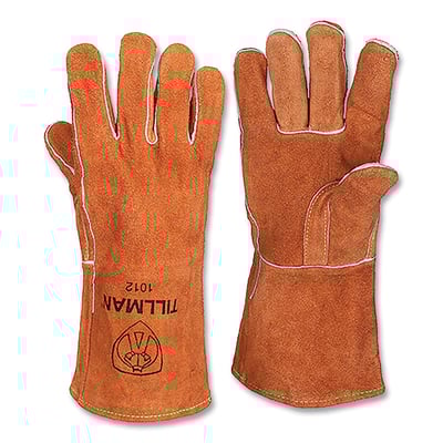 Loading product details...Stick Welding Gloves, 1012, Split Cowhide Palm/BOH/Cuff, Lg, Russet Brown, 14 in L Cuff