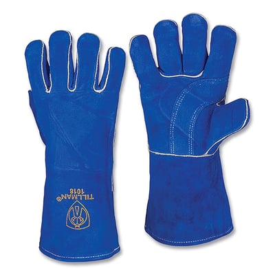 Loading product details...Stick Welding Gloves, 1018, Slightly Select Split Cowhide Palm/BOH/Cuff, Lg, Blue, 14 in L Cuff
